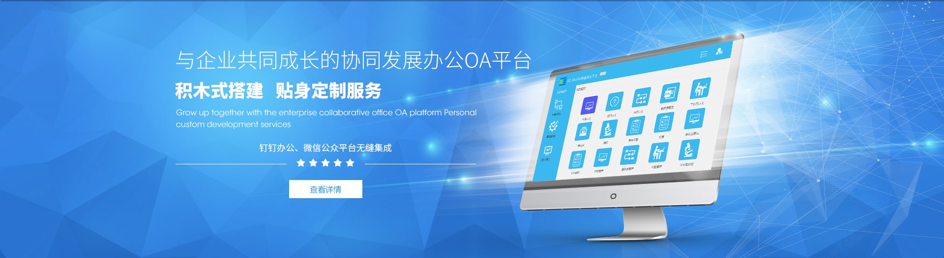 随时随地移动协同处理,老板的工作助手,移动APP、微信办公、钉钉集成办公模式多样,可依据需求组合搭建;